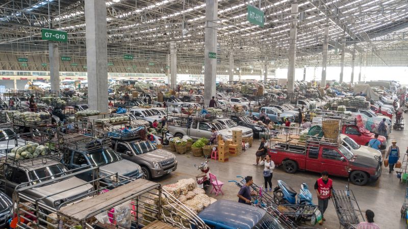 ตลาดสี่มุมเมือง ศูนย์กลางค้าส่งผัก-ผลไม้ชั้นนำของเอเชีย เป็นตลาดค้าส่งผักที่ใหญ่ที่สุดในประเทศไทย ด้วยปริมาณการซื้อขายผักต่อวันที่มากที่สุด ในปริมาณกว่า 6000 ตันต่อวัน ครอบคลุมผักทุกชนิด ตอกย้ำการช่วยเหลือเกษตรกรฝ่าวิกฤตโควิด-19 โดยมีอาคารรถผักเป็นพื้นที่ซึ่งเปิดให้เกษตรกรนำผลผลิตทางการเกษตร ผักชนิดต่างๆ เข้ามาขายโดยตรง เปิดให้บริการทุกวัน 24 ชั่วโมง เกษตรกรสามารถขับรถนำผลผลิตมาจอดขายผักจากท้ายรถโดยไม่ต้องเช่าแผงค้าประจำ แต่จะเสียค่าธรรมเนียมนำรถเข้าขายผักในตลาด