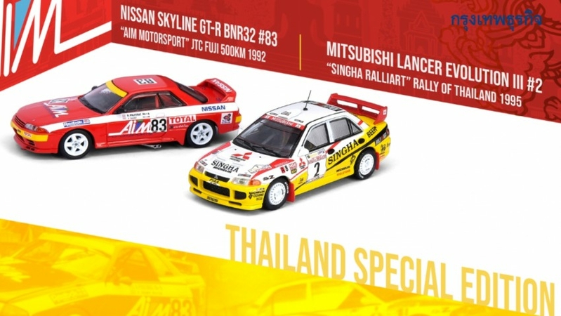 To reinforce the popularity of diecast cars in Thailand, Tiny is offering two legendary race cars — the Inno 64 – 1/64 Nissan Skyline GT-R BNR32 #83 and the Inno 64 – 1/64 Mitsubishi Lancer Evolution III #2.