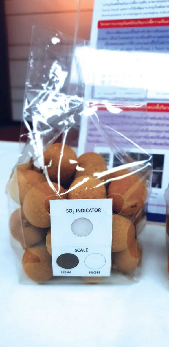และบรรจุภัณฑ์อัจฉริยะบ่งชี้ความปลอดภัยปริมาณซัลเฟอร์ไดออกไซด์ในลำไย วว. วิจัยและพัฒนาในรูปแบบฉลากเปลี่ยนสี สำหรับใช้ตรวจสอบปริมาณสารซัลเฟอร์ที่เหลือตกค้างที่ผิวผลลำไย โดยฉลากมีหลักการทำงานดังนี้ นำแผ่นฉลากไปวางที่ผลลำไย หากมีปริมาณสารซัลเฟอร์ฯ ต่ำ ฉลากจะยังคงสีน้ำตาลเข้ม แต่ถ้ามีปริมาณสารซัลเฟอร์ฯ มากสีของฉลากจะค่อยๆ จางลงจนไม่มีสีแสดงว่ามีสารซัลเฟอร์ฯ เกินมาตรฐานกำหนด นับเป็นวิธีที่สะดวก รวดเร็ว เข้าใจง่าย ช่วยเตือนผู้บริโภคก่อนที่จะตัดสินใจบริโภคลำไย เพื่อสร้างความน่าเชื่อถือหรือรับรองคุณภาพผลิตผล