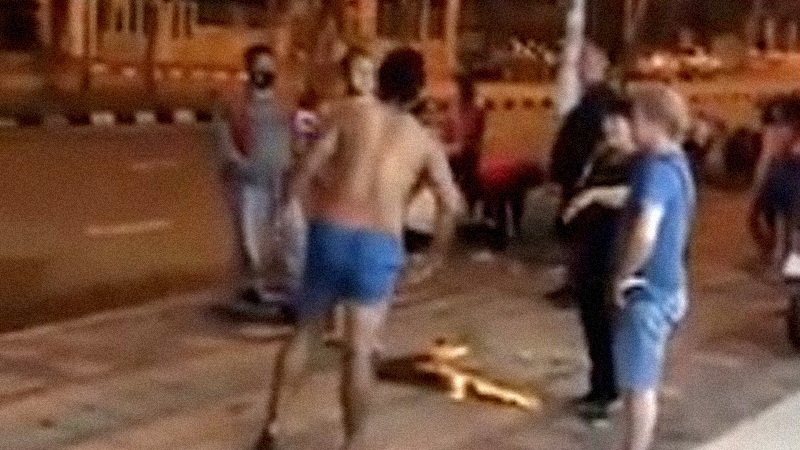 The driver, who appeared drunk, came out of the car and began shouting at everyone until he was detained and handed to the police.