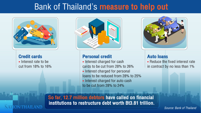 Anekpong Putthapiban, assistant director at Asia Plus Securities, said BOT’s move may have an adverse impact on commercial banks’ net interest margin due to the decline in real interest rate depending on the number of debtors participating in these measures.
