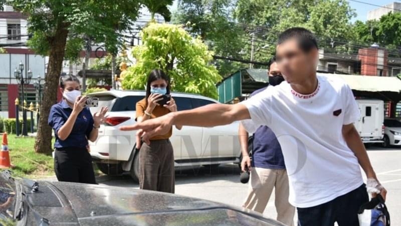 Thanayut Puttipeng, 19, was on a motorbike with his pregnant girlfriend Nadiyah, 21, in the Sunwinthawong neighbourhood at around 10.30pm, when they were suddenly hit by a car. The victim slid off the bike upon impact and was crushed to death as the car drove off.