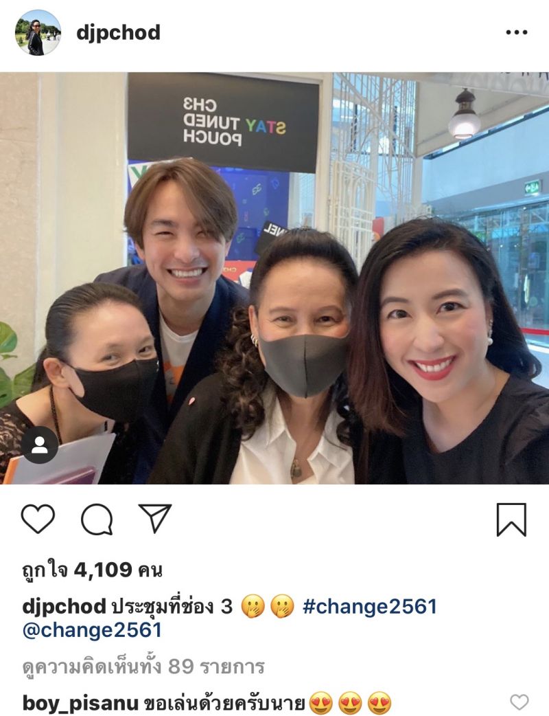 พร้อมแคปชั่นว่า “ประชุมที่ช่อง 3 #change2561 @change2561”