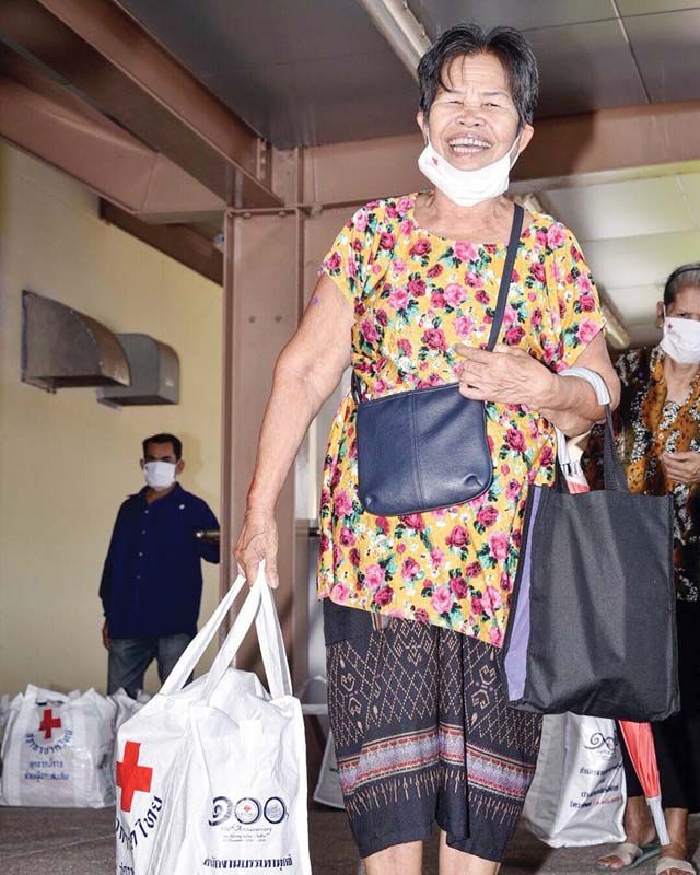 จากการลงพื้นที่จังหวัดต่างๆ ที่ผ่านมานั้น พบว่ายังมีประชาชนอีกจำนวนมากที่ประสบปัญหาทางด้านเศรษฐกิจ ขาดเงินรายได้และอาหารในการประทังชีพในแต่ละวันโดยเฉพาะผู้พิการและผู้สูงอายุ ทำให้การช่วยเหลือโดยการจัดตั้งครัวเคลื่อนที่ของสภากาชาดไทย และการแจกชุดธารน้ำใจฯ ยังคงดำเนินไปอย่างต่อเนื่อง สภากาชาดไทย โดยสำนักงานจัดหารายได้ ดำเนินการเปิดรับบริจาคตั้งแต่เริ่มมีการแพร่ระบาดของเชื้อไวรัส COVID-19 จนถึงปัจจุบันมียอดเงินบริจาค ณ วันที่ 16 มิถุนายน 2563 เป็นเงินรวมทั้งสิ้น 76,055,490 บาท ซึ่งจัดสรรเป็น 3 ส่วน คือ 1.การป้องกัน โดยการผลิตหน้ากากอนามัยแบบผ้า จำนวน 10 ล้านชิ้น แจกจ่ายให้กับประชาชนใน 76 จังหวัด และแจกชุดธารน้ำใจฯ 2.การรักษาพยาบาล ผ่านการดำเนินงานของโรงพยาบาลจุฬาฯ โรงพยาบาลสมเด็จพระบรมราชเทวี ณ ศรีราชา จ.ชลบุรี สถานีกาชาดทั้ง 13 แห่ง และ 3.การเยียวยา โดยการจัดตั้งครัวเคลื่อนที่ฯ มอบอาหารปรุงสุกใหม่พร้อมทานให้ประชาชนผู้ได้รับผลกระทบใน 10 จังหวัดที่ผ่านมา”