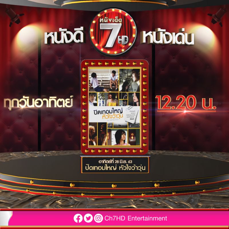 สามารถติดตามความเคลื่อนไหวรายการต่าง ๆ ได้ทาง ช่อง 7HD กด 35 ทางโซเชียล Facebook, IG, Twitter : Ch7HD และ Ch7HD Entertainment ทางเว็บไซต์ : www.ch7.com
