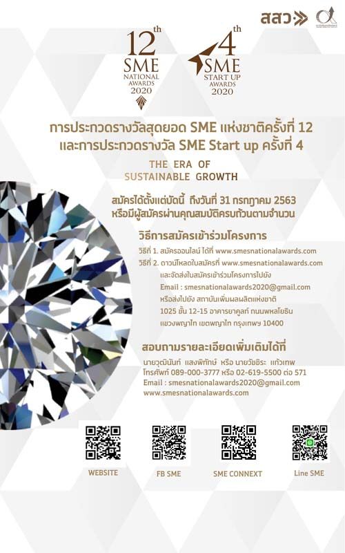 โดยมีกลุ่มธุรกิจ SME ที่เป็นเป้าหมายใน 4 ภาคอุตสาหกรรมหลัก 21 กลุ่มธุรกิจย่อย สำหรับเกณฑ์การพิจารณาตัดสินรางวัลนั้น จะอ้างอิงเกณฑ์การตัดสินรางวัลคุณภาพแห่งชาติมาปรับใช้เพื่อให้การพิจารณาต่างๆ มีความเหมาะสมและตรงกับวัตถุประสงค์ของโครงการ และในปีนี้ครบรอบ 12 ปี ของการประกวดรางวัลสุดยอด SME แห่งชาติ จะมีการมอบโล่รางวัลพิเศษสำหรับผู้ที่ได้รับรางวัลสุดยอด SME ซ้อน 2 ปี และ 3 ปี และการจัดนิทรรศการในโอกาสครบรอบ 12 ปี เพื่อเป็นการแสดงถึงการเติบโตอย่างยั่งยืนของ SME ไทย นอกจากนี้ ยังมีการมอบโล่รางวัลพิเศษสำหรับผู้ประกอบการที่สามารถปรับตัวต่อสถานการณ์ COVID-19 ได้เป็นอย่างดีอีก 3 รางวัล สามารถสมัครเข้าร่วมโครงการ ได้ที่ http://www.smesnationalawards.com หรือ ดาวน์โหลดใบสมัครที่ http://www.smesnationalawards.comและจัดส่งใบสมัครเข้าร่วมโครงการไปยัง Email: smesnationalawards2020@gmail.com หรือส่งไปยัง สถาบันเพิ่มผลผลิตแห่งชาติ 1025 ชั้น 12-15 อาคารยาคูลท์ ถนนพหลโยธิน แขวงพญาไท เขตพญาไท กรุงเทพฯ 10400