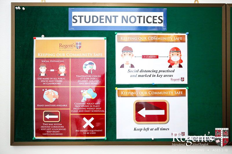 โดย มร.ปีเตอร์ โฮแกน ครูใหญ่โรงเรียนนานาชาติรีเจ้นท์กรุงเทพฯ ได้กล่าวว่า ขณะนี้ทางโรงเรียนมีความพร้อมในการเปิดเรียนอีกครั้ง บนถนนประชาอุทิศในพื้นที่กว่า 21 ไร่ ใกล้สี่แยกเหม่งจ๋ายและเพียบพร้อมด้วยสิ่งอำนวยความสะดวกที่ครบครัน บุคลากรด้านการสอนที่มีคุณภาพ โรงเรียนมีความพร้อมด้านสาธารณสุขและโครงสร้างพื้นฐาน ซึ่งมีจุดคัดกรอง อุปกรณ์ตรวจวัดไข้แบบ ThermoScan มีแนวทางให้นักเรียนสวมหน้ากากหรือเฟซชิลด์ตลอดเวลา หลีกเลี่ยงการใช้มือสัมผัสบนใบหน้า จุดเช็ดรองเท้าด้วยน้ำยาฆ่าเชื้อโรค อ่างล้างมือโดยใช้เท้าแทนการใช้มือเพื่อลดการสัมผัส จุดตั้งเจลแอลกอฮอล์สำหรับล้างมือ อ่างล้างมือด้วยสบู่ การจัดระยะห่างของโต๊ะเรียน ตลอดจนมีการทำความสะอาดพื้นผิวจุดสัมผัสอย่างสม่ำเสมอ มีเส้นทางการเดินแบบวันเวย์ หากนักเรียนมีไข้สูงกว่า 37.5 องศาหรือมีอาการเจ็บคอ ไอ ทางโรงเรียนจะแจ้งให้ผู้ปกครองมารับกลับบ้านทันที ที่สำคัญได้ยึดแนวทางผลัดกันเข้าเรียน มีการแบ่งการเข้าคลาสลดความแออัด ระดับอนุบาล แบ่งเป็นสองช่วงเวลา 08.30-11.00 น. และ 12.00-14.30 น. ระดับประถม แบ่งเป็นสองช่วงเวลา 09.00-11.30 น. และ 12.30-15.00 น. และระดับมัธยมเรียนเต็มวันตั้งแต่เวลา 09.00-14.30 น. ทั้งนี้ได้ปฏิบัติตามมาตรการเว้นระยะห่างของกระทรวงสาธารณสุข ส่วนของคลาสเรียนโรงเรียนดนตรียามาฮ่าที่รีเจ้นท์ ได้จำกัดจำนวนของผู้เรียนไว้1:5 ตารางเมตร หรือรับนักเรียนสูงสุด 50 คนเท่านั้น คลาสเรียนฟุตบอลต่อกลุ่มจำกัดผู้เรียนไว้สูงสุด 8 คนต่อโค้ชผู้สอน 1 คน คลาสว่ายน้ำต่อกลุ่มจำกัดผู้เรียนไว้สูงสุด 8 คนต่อโค้ชผู้สอน 1 คน