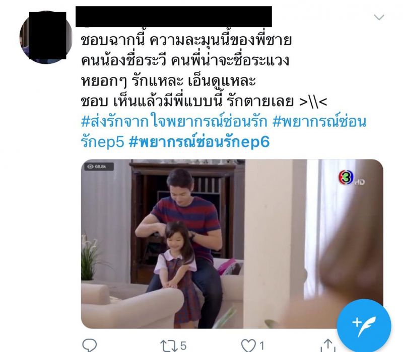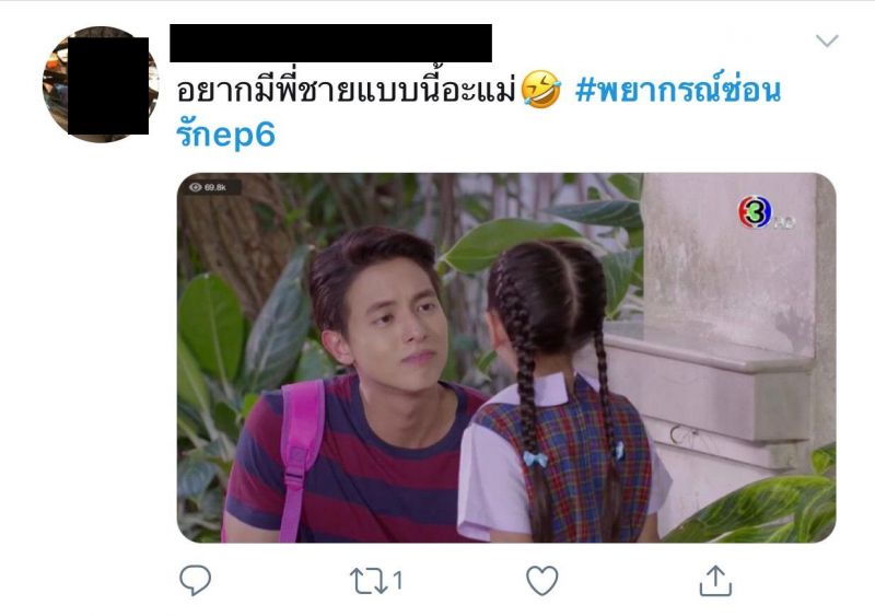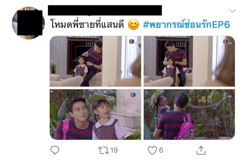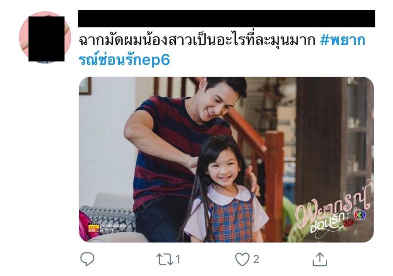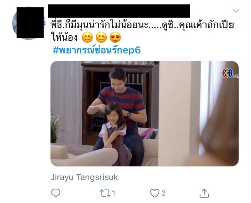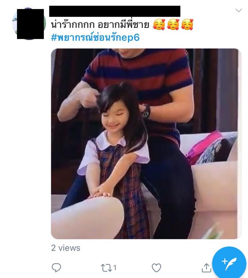 ออกมาแค่ช็อตเดียว แต่ทัชใจแฟนละครไปเต็มๆ สำหรับ ความน่ารักของ คู่พี่น้อง “ธีรุตม์” (เจมส์ จิรายุ) กับ “ธีรวี” (น้องอินเตอร์ รุ่งรดา) ในละคร “พยากรณ์ซ่อนรัก” ช่อง 3 โดย EP6 (30 มิย) ที่ผ่านมา เป็นฉากที่ พี่ชายอย่าง “ธีรุตม์” มัดผมให้น้องสาวตัวเล็ก “ธีรวี” เคมีความมุ้งมิ้งของพี่น้องในฉากนี้ โดนใจคนดูอย่างมาก เรียกว่า กระแสในโลกทวิตเตอร์ คนแห่แคปรัวฉากนี้รัวๆ พร้อมแคปชั่นสุดประทับใจมากมาย โดยส่วนมาก ยกให้เจมส์เป็นพี่ชายที่แสนดี ในโหมดอบอุ่น รวมถึงอยากจะขอจับจอง อยากให้เป็นพ่อของลูก กันเลยทีเดียว เห็นฟีดแบคที่พูดถึงฉากนี้แล้ว อบอุ่น ละมุนละไมมากพ่อเอ๊ย!! ตามเชียร์ความน่ารักของพี่น้องคู่นี้ได้แบบรัวๆ รวมถึงเคมีความฟิน ฉากกุ๊กกิ๊กของพระนาง เจมส์-ไอซ์ ได้ทุกวันจันทร์ – อังคาร เวลา 20.20 น. ทาง ช่อง 3 กด 33