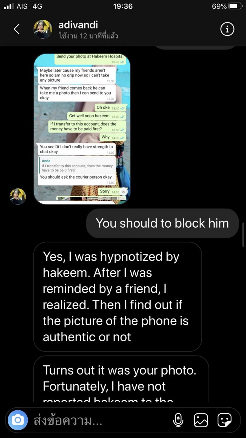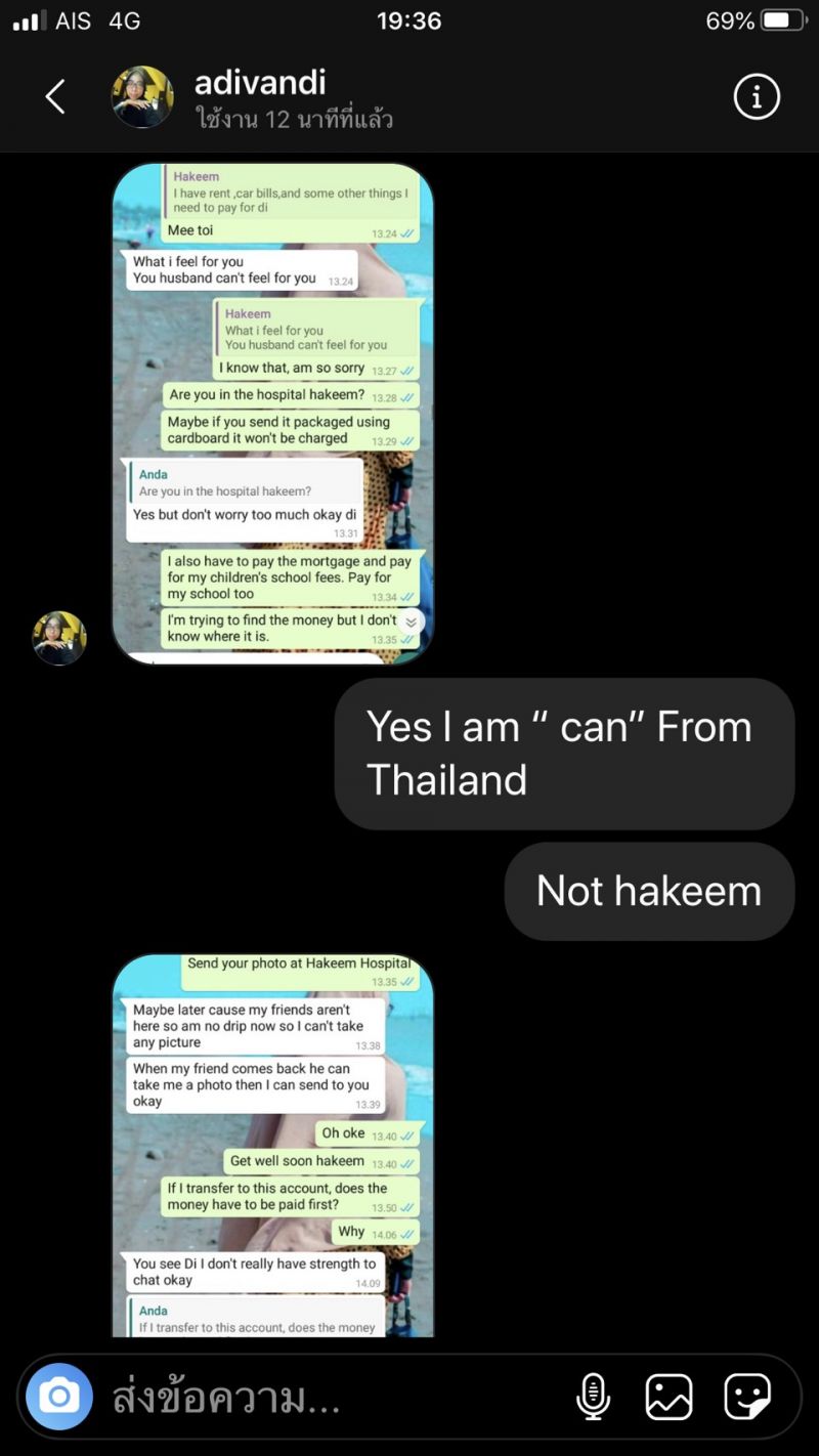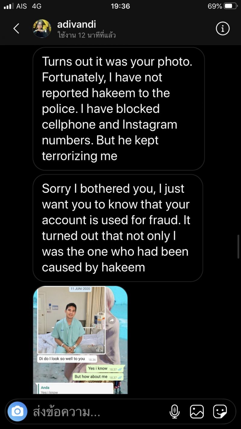 โดย “แคน อติรุจ” เผยว่า “เรื่องราวเริ่มต้นขึ้นเมื่อ 1 เดือนก่อน มีหญิงสาวชาวฟิลิปปินส์ ทักไดเรกไอจีมาหาแคน พร้อมกับส่งรูปโปรไฟล์ whatapp ของผู้ชายคนหนึ่ง ใช้ชื่อว่า andy แต่รูปนั้นเป็นรูปภาพจาก IG ของแคน เธอเล่าว่าผู้ชายคนนี้ทักมาคุยกับเธอลักษณะออกแนวจีบ พูดคุยกันมาพักนึง แต่ที่เธอเอะใจเพราะว่า andy บอกว่าเค้าเกิดที่ USA แต่ว่าตอนนี้ทำงานอยู่ที่ลอนดอน แต่เธอนั้นเคยมาเที่ยวประเทศไทย และจำได้ว่ามีสถานที่หนึ่งชายคนนั้นเอารูปแคนไปใช้มันคือประเทศไทย จึงเอะใจ และหาไอจีแคนจนเจอ จึงทักมาเตือนว่ามีคนเอารูปคุณไปใช้ ครั้งนั้นแคนไม่ได้ดำเนินการทำอะไรเพราะเธอไม่ได้ถูกหลอก จนวันที่ 22 มิถุนายน ที่ผ่านมา มีผู้หญิงอีกหนึ่งคนไดเรกไอจีมาหาแคนอีก ครั้งนี้เป็นคนอินโดนีเซีย แต่คราวนี้ผู้ชายคนนี้ใช้ชื่อว่า อาคีม มาในรูปแบบของ Romancescamer ซึ่งทำในรูปแบบเหมือนกับที่เราได้ยินจากข่าวอยู่บ่อยๆ มีชวนคุย จีบ และบอกว่าจะมีพัสดุส่งไปให้ ให้ไปรับ แต่ต้องโอนเงินค่าธรรมเนียมอะไรก่อน ซึ่งดูเหมือนว่าเธอคนนี้ก็ยังแก้ปัญหาอะไรไม่ได้มากนัก เลยส่งข้อความมาเพื่อบอกแคนอีกครั้งหนึ่งว่า มีคนนำรูปภาพของแคนไปใช้ปลอมตัวตนอีกแล้ว โดยเป็นคนต่างประเทศทั้งคู่ เลยเอามาเตือนภัย แต่ก็ไม่รู้ว่าจะทำอย่างไรเหมือนกัน เพราะคนที่ถูกหลอกเป็นคนต่างชาติทั้งหมด แคนว่ามันเป็นสิ่งที่น่ากลัว เพราะเราไม่สามารถรู้ได้เลยว่า ใครเอารูปของเราไปใช้บ้าง แต่สองครั้งที่ผ่านมาถือว่าโชคดี ที่มีคนแจ้งเตือนเรามาก่อน” แคน กล่าว