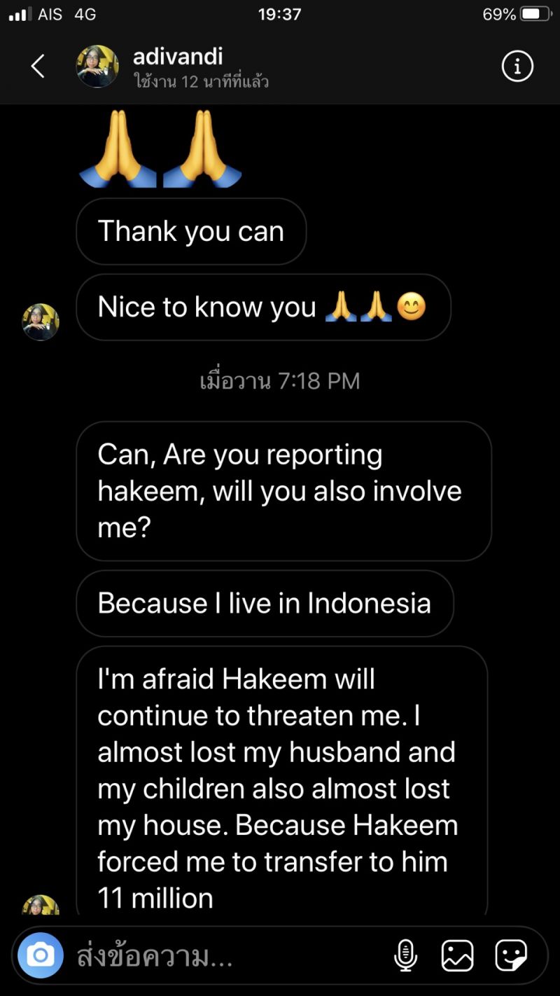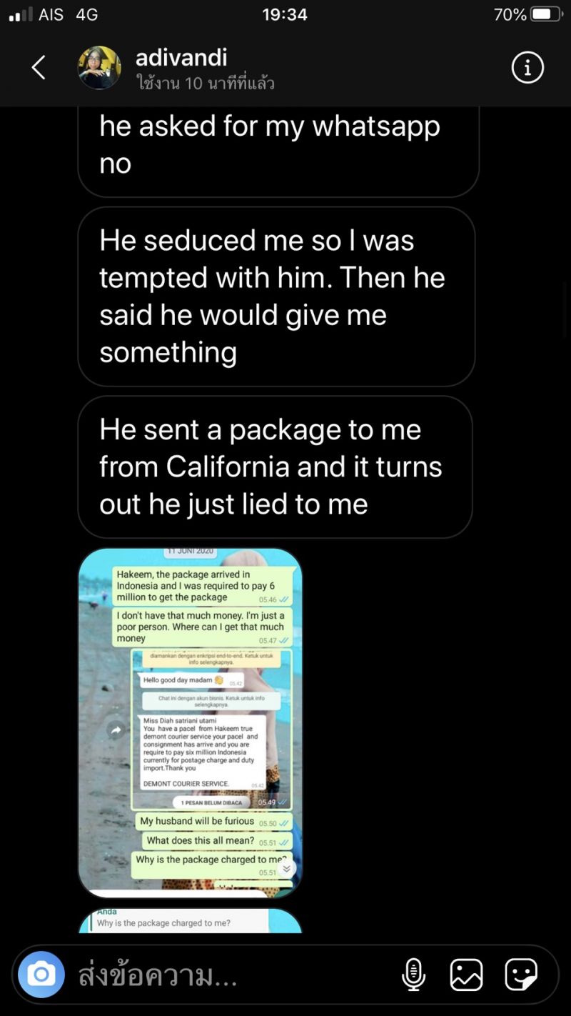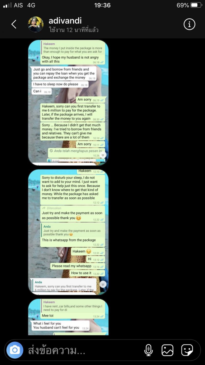 โดย “แคน อติรุจ” เผยว่า “เรื่องราวเริ่มต้นขึ้นเมื่อ 1 เดือนก่อน มีหญิงสาวชาวฟิลิปปินส์ ทักไดเรกไอจีมาหาแคน พร้อมกับส่งรูปโปรไฟล์ whatapp ของผู้ชายคนหนึ่ง ใช้ชื่อว่า andy แต่รูปนั้นเป็นรูปภาพจาก IG ของแคน เธอเล่าว่าผู้ชายคนนี้ทักมาคุยกับเธอลักษณะออกแนวจีบ พูดคุยกันมาพักนึง แต่ที่เธอเอะใจเพราะว่า andy บอกว่าเค้าเกิดที่ USA แต่ว่าตอนนี้ทำงานอยู่ที่ลอนดอน แต่เธอนั้นเคยมาเที่ยวประเทศไทย และจำได้ว่ามีสถานที่หนึ่งชายคนนั้นเอารูปแคนไปใช้มันคือประเทศไทย จึงเอะใจ และหาไอจีแคนจนเจอ จึงทักมาเตือนว่ามีคนเอารูปคุณไปใช้ ครั้งนั้นแคนไม่ได้ดำเนินการทำอะไรเพราะเธอไม่ได้ถูกหลอก จนวันที่ 22 มิถุนายน ที่ผ่านมา มีผู้หญิงอีกหนึ่งคนไดเรกไอจีมาหาแคนอีก ครั้งนี้เป็นคนอินโดนีเซีย แต่คราวนี้ผู้ชายคนนี้ใช้ชื่อว่า อาคีม มาในรูปแบบของ Romancescamer ซึ่งทำในรูปแบบเหมือนกับที่เราได้ยินจากข่าวอยู่บ่อยๆ มีชวนคุย จีบ และบอกว่าจะมีพัสดุส่งไปให้ ให้ไปรับ แต่ต้องโอนเงินค่าธรรมเนียมอะไรก่อน ซึ่งดูเหมือนว่าเธอคนนี้ก็ยังแก้ปัญหาอะไรไม่ได้มากนัก เลยส่งข้อความมาเพื่อบอกแคนอีกครั้งหนึ่งว่า มีคนนำรูปภาพของแคนไปใช้ปลอมตัวตนอีกแล้ว โดยเป็นคนต่างประเทศทั้งคู่ เลยเอามาเตือนภัย แต่ก็ไม่รู้ว่าจะทำอย่างไรเหมือนกัน เพราะคนที่ถูกหลอกเป็นคนต่างชาติทั้งหมด แคนว่ามันเป็นสิ่งที่น่ากลัว เพราะเราไม่สามารถรู้ได้เลยว่า ใครเอารูปของเราไปใช้บ้าง แต่สองครั้งที่ผ่านมาถือว่าโชคดี ที่มีคนแจ้งเตือนเรามาก่อน” แคน กล่าว