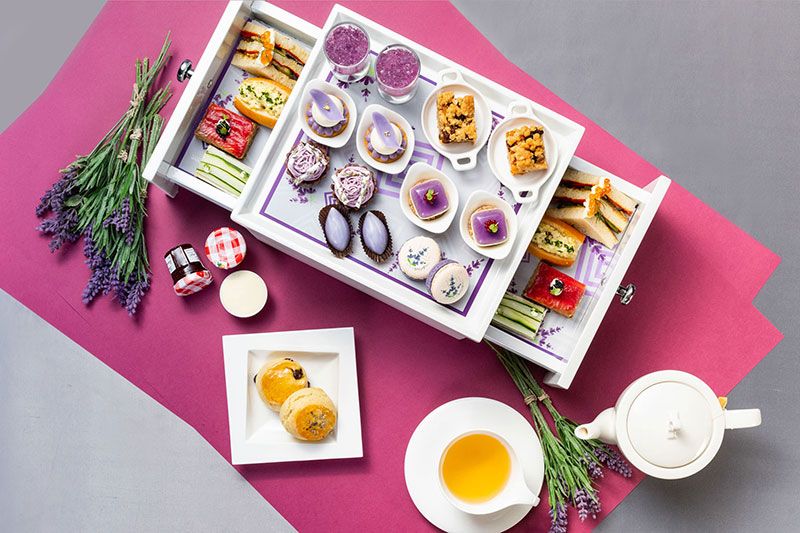 อัพ แอนด์ อะบัฟ บาร์ (Up & Above Bar) เชิญชวนกลับมาลิ้มรสขนมนานาชนิดในชุดน้ำชายามบ่ายสีม่วง สีสันของทุ่งดอกลาเวนเดอร์ในช่วงฤดูร้อนที่ฮอกไกโด ประเทศญี่ปุ่น ที่พร้อมให้บริการระหว่างวันที่ 2 กรกฎาคม-30 กันยายน2563 ขนมในชุดน้ำชายามบ่ายสีม่วงธีมลาเวนเดอร์ในปีนี้ ล้วนออกแบบโดยนำความงดงามของทุ่งดอกลาเวนเดอร์ที่ฮอกไกโด ประเทศญี่ปุ่น มาเป็นแรงบันดาลใจ เพื่อให้ได้เพลิดเพลินกับการจิบน้ำชายามบ่ายชุดพิเศษนี้ราวกับนั่งอยู่ท่ามกลางความงดงามของทุ่งดอกลาเวนเดอร์ ขนมนานาชนิดน่ารักน่ารับประทาน สามารถเลือกรับประทานคู่กับชามาคิยาจ แฟรส์ (Mariage Frères) ชาชั้นเลิศสัญชาติฝรั่งเศส ชากลีบดอกบัวซาโรที (Saro Tea)หรือกาแฟ ให้บริการทั้งแบบร้อนและเย็น ราคาเริ่มต้นชุดละ 1,400++ บาท ราคารวมเครื่องดื่มชาหรือกาแฟสำหรับ 2 ท่าน