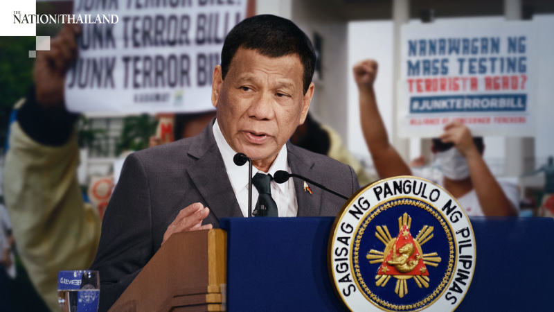 “The signing of the aforesaid law demonstrates our serious commitment to stamp out terrorism, which has long plagued the country and has caused unimaginable grief and horror to many of our people,” his spokesperson Harry Roque said.