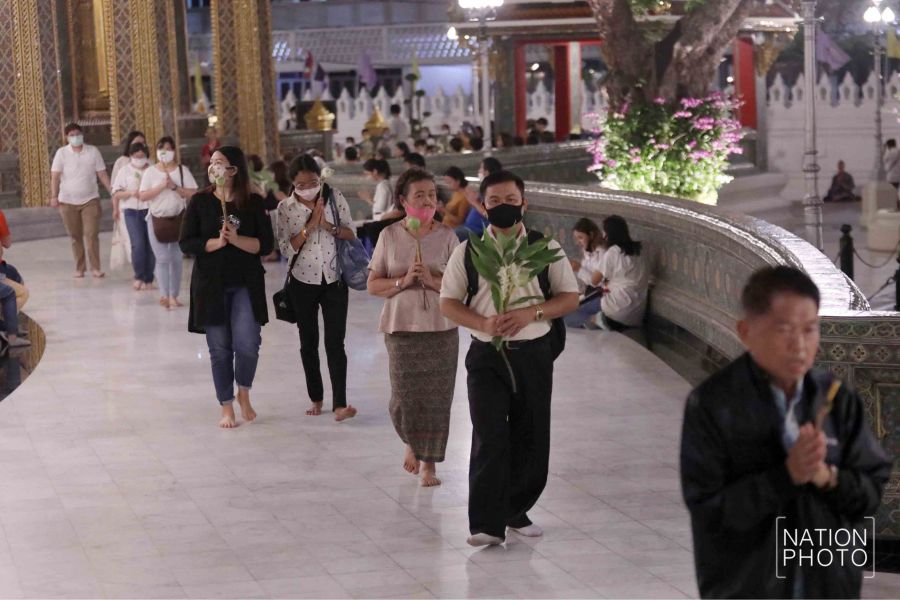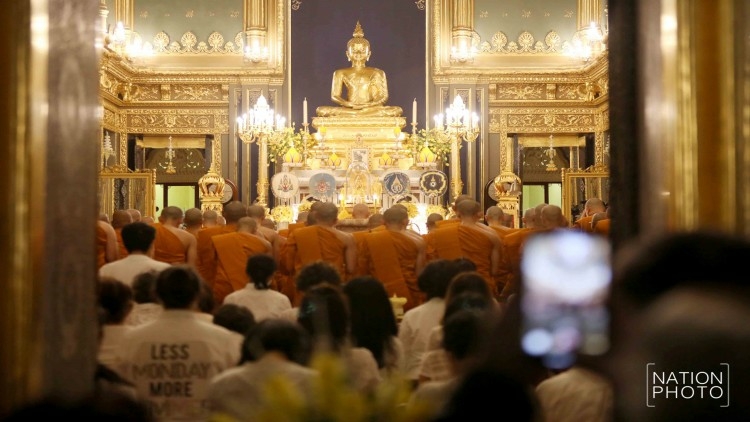 Buddhists thronged temples to listen to teachings on dharma and pray yesterday evening (July 5) on the occasion of Asalha Bucha Day (Dhamma Day).