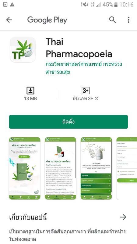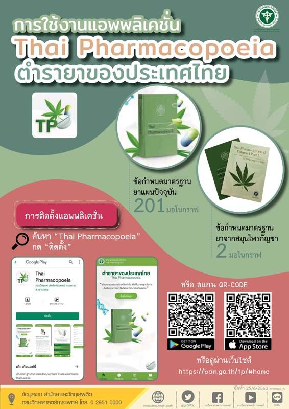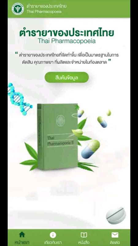 กรมวิทยาศาสตร์การแพทย์ กระทรวงสาธารณสุข ได้จัดทำตำรายาของประเทศไทย Thai Pharmacopoeia ผ่าน Mobile Application เพื่อเป็นการสนองนโยบาย Thailand 4.0 ของรัฐบาลและอำนวยความสะดวกให้แก่ผู้ใช้งานให้ได้ข้อมูลที่เป็นปัจจุบัน