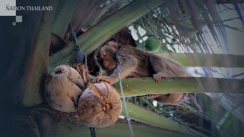 Monkeys are used for coconut-picking by a small group of farmers from the older generation.