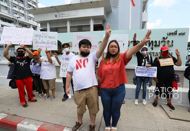 In a move to display civil disobedience, members of the Student Union of Thailand gathered outside Bangkok’s Pathumwan Police Station on Wednesday (July 8) to protest against the government-imposed emergency decree.