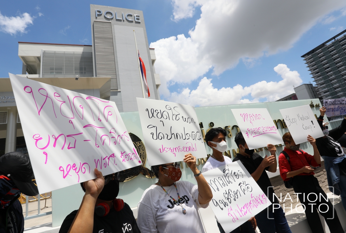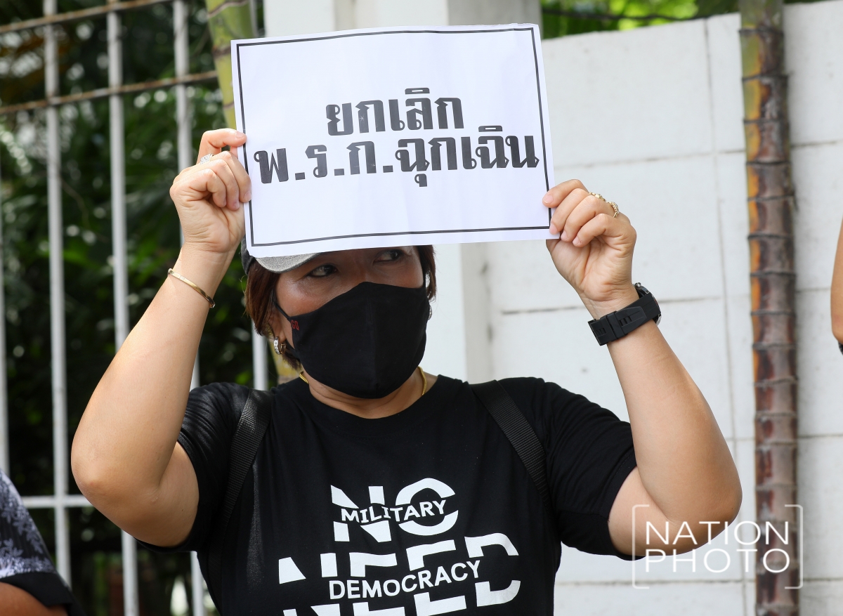 In a move to display civil disobedience, members of the Student Union of Thailand gathered outside Bangkok’s Pathumwan Police Station on Wednesday (July 8) to protest against the government-imposed emergency decree.