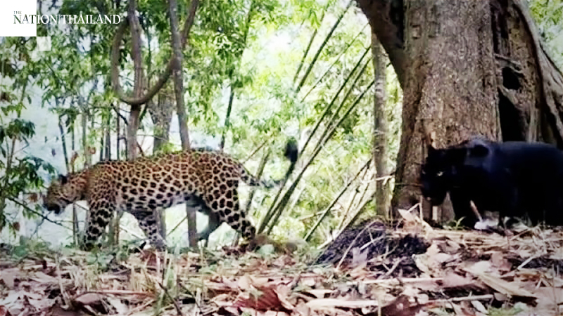 In a Facebook post on Thursday (July 9), Kamphaeng Phet’s Khlong Lan National Park reported that camera traps set up in the park to track the population of tigers managed to capture the sighting of a black panther and leopard instead.