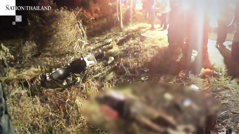 Then suddenly a black pickup truck showed up to mow down six rescue officials and the injured person. The victims were immediately taken to hospital, but four succumbed to their injuries, including one Ruam Katanyu official, two Sawang Ariyo staff, one of whom was pregnant, as well as the man injured in the motorcycle accident.