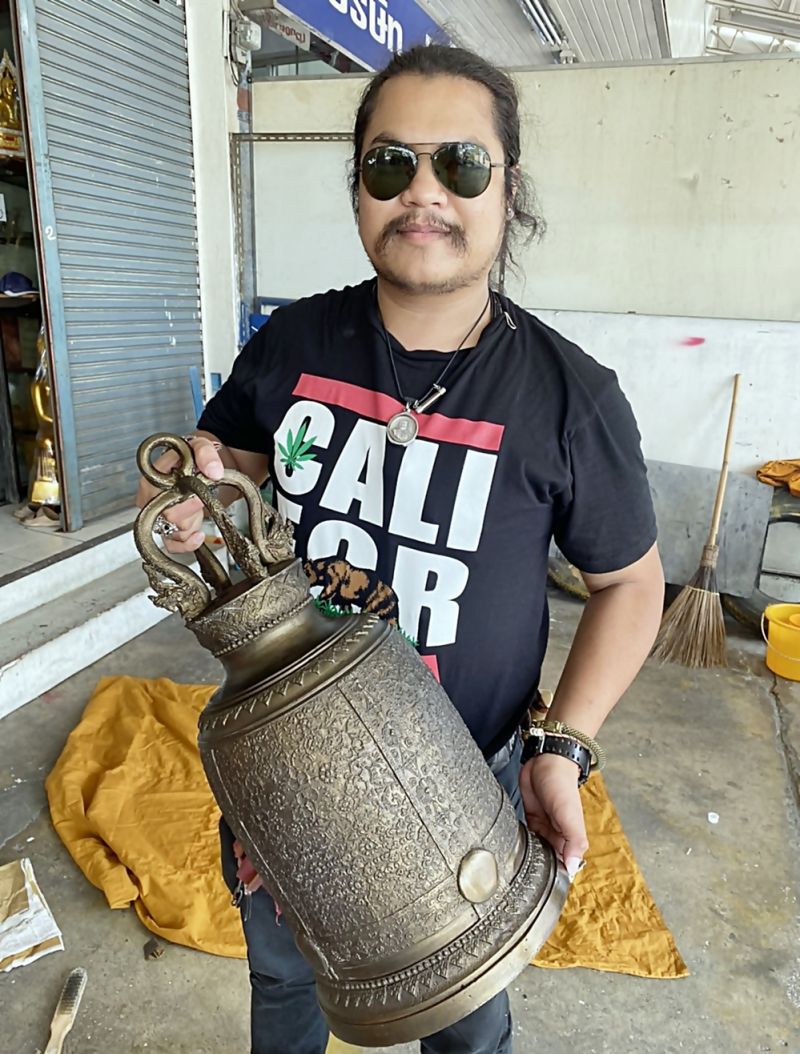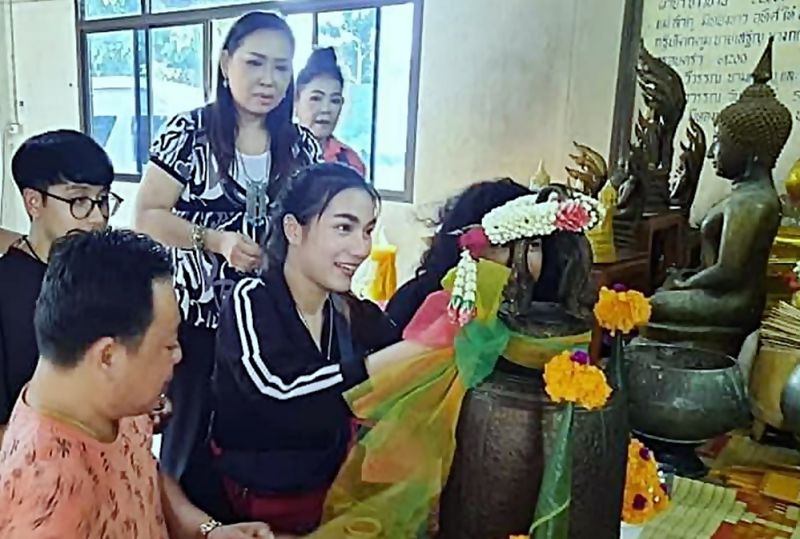 ทางด้าน “น๊อต ไผ่ร้อยกอ” ก็เปิดเผยว่า “ในฐานะที่เราเป็นศิลปินน้องใหม่ที่พึ่งเริ่มจะก้าวเดินในวงการ ถ้ามีเวลาว่างก็จะหาเวลาทำบุญเติมบุญให้กับตัวเองอยู่ตลอด และวันนี้น้องฟ้า ขวัญนคร ก็ได้ชวนมาทำบุญถวายระฆัง และผ้าไตรจีวรกันที่วัด เพื่อเป็นที่พึ่งทางใจและความเชื่อว่า ถ้าเราได้ถวายระฆังแล้ว เราจะมีชื่อเสียงโด่งดังกังวานเหมือนดั่งเสียงระฆัง หรือไม่ว่าจะทำกิจการใดๆก็จะประสบความสำเร็จดั่งใจหมายครับ”