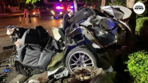 Three killed as speeding car rams electric pole