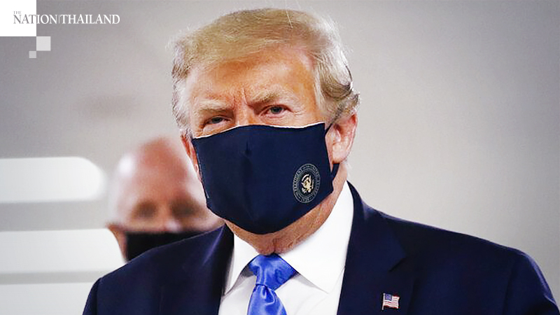 While visiting wounded veterans and health-care workers at the facility, Trump wore a dark mask that covered most of his face. It featured the presidential seal.