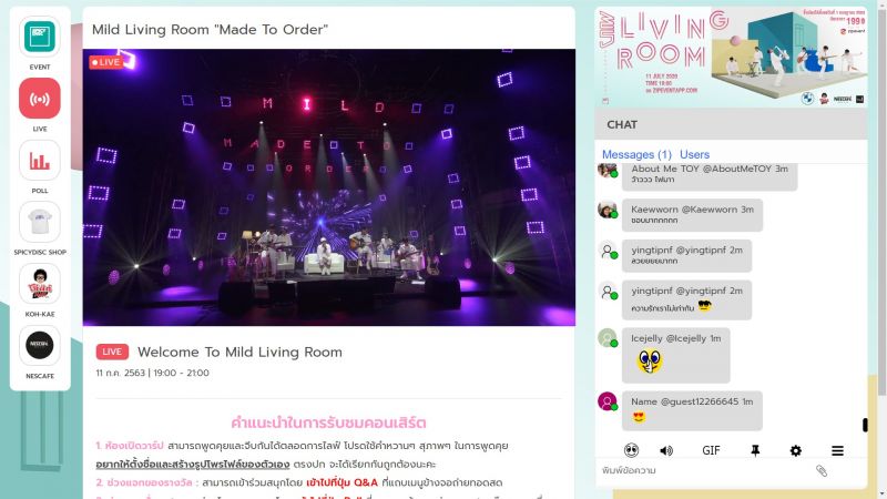 เป็นอีกหนึ่งคอนเสิร์ตที่อบอวลไปด้วยความสนุก และอบอุ่นไปในเวลาเดียวกันกับ MILD LIVING ROOM MADE TO ORDER (มายด์ ลีฟวิ่งรูม เมด ทู ออร์เดอร์) คอนเสิร์ตแรกจาก SPICYDISC (สไปร์ซซี่ ดิสก์) หลังจากคลายล็อคดาวน์ที่จัดขึ้นไปเมื่อวันเสาร์ที่ 11 กรกฏาคม 63 ที่ผ่านมา แม้ตอนนี้ทุกคนจะเริ่มกลับมาใช้ชีวิตตามปกติแล้วแต่ทางผู้จัดก็ยังคงคำนึงถึงความปลอดภัยไว้ก่อนจึงได้จัดคอนเสิร์ตออกมาในรูปแบบออนไลน์ และแน่นอนว่าหลังจากที่ปล่อยภาพโปสเตอร์ออกมาก็ได้รับการตอบรับที่ดีจากแฟนๆ ที่คิดถึงบรรยากาศของการไปชมคอนเสิร์ตทางสไปร์ซซี่ดิสก์เลยขอเพิ่มความพิเศษให้แฟนตัวจริง200 ท่านแรกที่ซื้อบัตรร่วมลุ้นเข้ามาชมคอนเสิร์ตสดๆ ที่นครินทร์ สเปซ เพียง 15 คนเท่านั้น โดยมีมารตการป้องกันตามกฏที่ทางรัฐบาลกำหนด เรียกได้ว่าเป็นคอนเสิร์ตสุดเอ็กคูลซีฟจริงๆ
