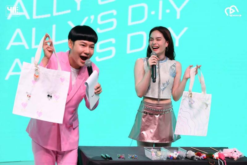 นอกจากสีสันของเพอร์ฟอร์แมนซ์โชว์ในเพลงต่างๆ และการสัมภาษณ์พูดคุยตามแบบฉบับของงานแฟนมีตติ้งที่คุ้นเคยแล้ว ก็ต้องมีกิจกรรมสนุกๆ เพื่อให้ผู้ชมได้มีส่วนร่วมกันด้วย ซึ่งงานนี้ แอลลี่ ขอนำเสนอช่วง ‘ALLY D.I.Y.’ โดยเจ้าตัวลงมือทำของที่มีชิ้นเดียวในโลกมอบให้กับแฟนๆ ผู้โชคดี ซึ่งของขวัญพิเศษดังกล่าวคือ ‘ถุงผ้า ลิมิเต็ด เอดิชั่น’ ที่มาในธีม Happy Rainbow และ Shining Love แต่จะสุ่มรายชื่อจับแจกกันง่ายๆ ก็คงไม่สนุกพอ ดังนั้นผู้โชคดี 4 คนจึงต้องมาแข่งขันตอบคำถามเกี่ยวกับ แอลลี่ ในช่วง ‘FUN FACTS OF ALLY’ ซึ่งในกลุ่มผู้โชคดี 4 คนมีแฟนบอยชาวสิงคโปร์มาร่วมสนุกด้วย 1 คน ทำให้บรรยากาศวันนี้มีความอินเตอร์ขึ้นทันที แถม แอลลี่ ยังช่วยรับหน้าที่ล่ามภาษาอังกฤษแปลคำถามให้ด้วยตัวเองกันเลย