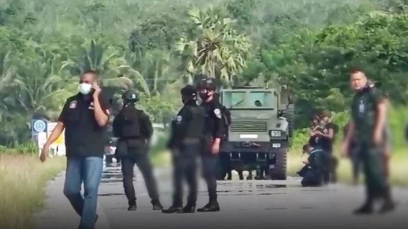 An explosives ordnance disposal team, which was dispatched to secure the area after the blast, found the shrapnel-ridden body of officer Mujarintee Srikaew on the ground two metres away from the explosion.