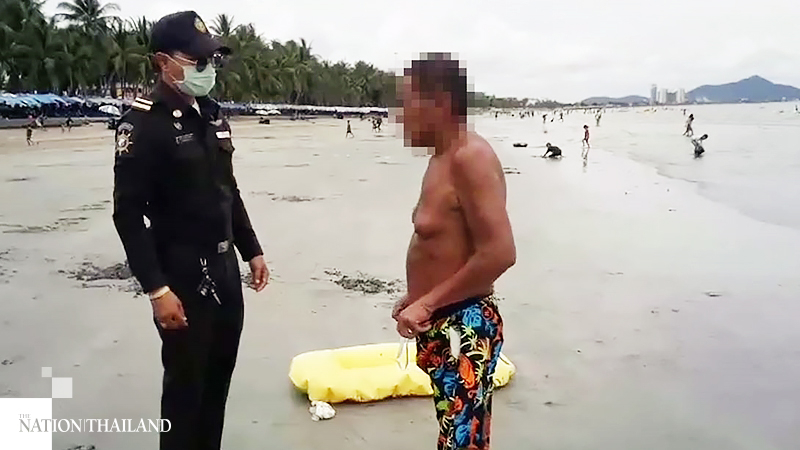 Bang Saen municipality officials, Pornsiri Thongwichien and Chaikit Somprasong, had received a report from tourists that a man was seen walking down the beach without any clothes.