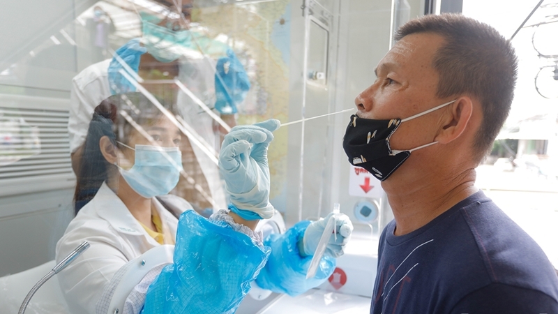 People who are at risk of contracting Covid-19 because they visited Rayong’s Passione shopping mall on July 10 undergo tests on Tuesday (July 14).