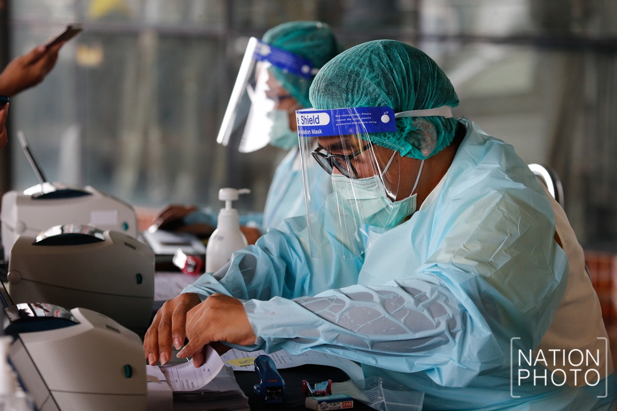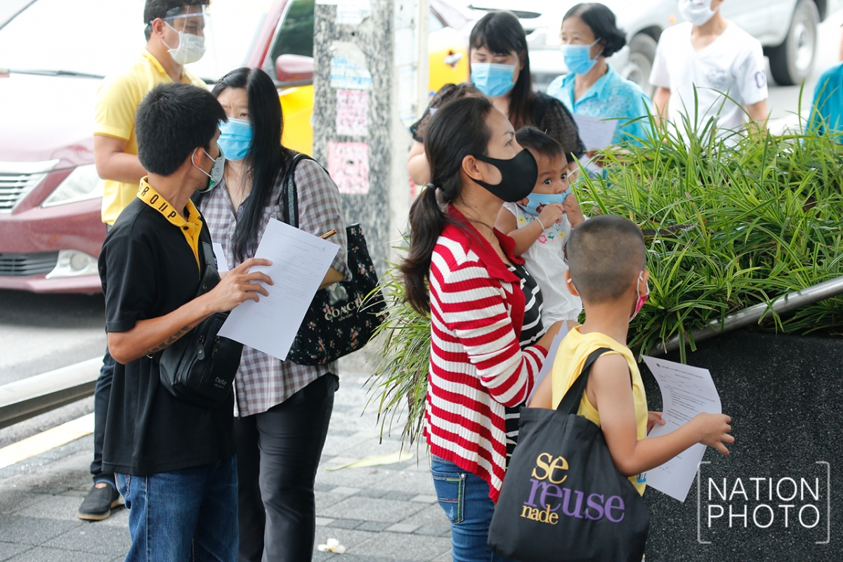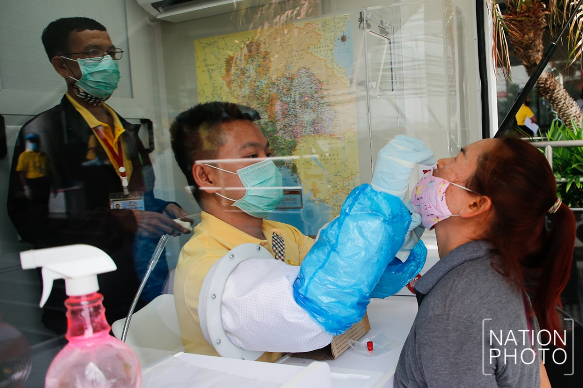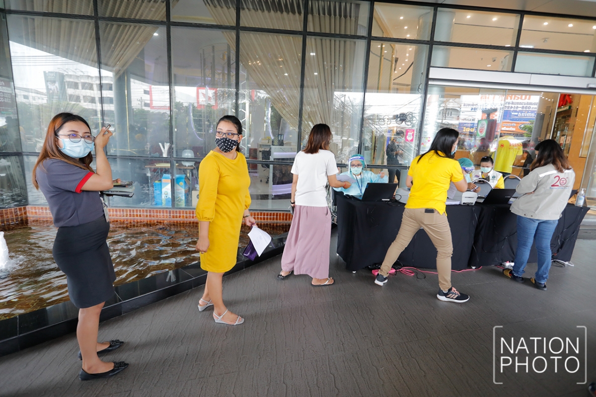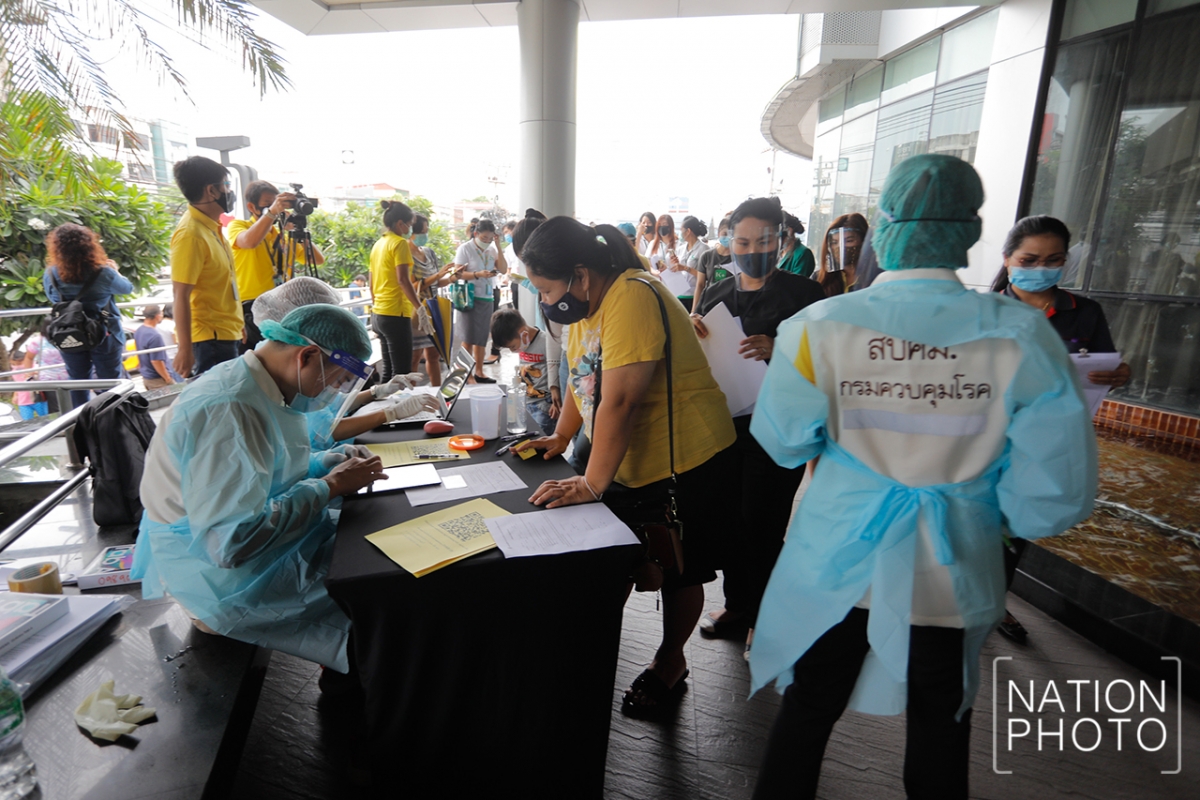 People who are at risk of contracting Covid-19 because they visited Rayong’s Passione shopping mall on July 10 undergo tests on Tuesday (July 14).