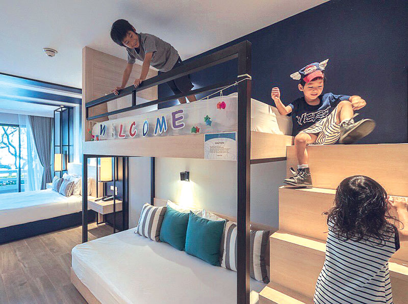 โซน Family Wing ที่พัฒนาขึ้น มี 74 ห้อง ดีไซน์เป็นพิเศษสำหรับครอบครัวโดยเฉพาะ อาทิ ห้องรีเจนซี่ วิวทะเล และวิวสระว่ายน้ำ ที่มีขนาดห้องใหญ่กว่า 42 ตร.ม. พร้อมพื้นที่สำหรับนั่งเล่น และระเบียงส่วนตัว, ห้องแฟมิลี่ บังค์ เบดส์ ที่ได้รับการตกแต่งสไตล์โมเดิร์น โดยมีเตียง 2 ชั้น สำหรับเด็กๆ ให้ได้ใช้เวลาสนุกร่วมกันกับคุณพ่อคุณแม่ในห้องเดียวกัน และห้องดีลักซ์ แฟมิลี่ สำหรับ 4 ท่าน ประกอบด้วย 2 ห้องนอน แบ่งเป็นห้องนอนใหญ่สำหรับคุณพ่อคุณแม่ และมีประตูเชื่อมถึงห้องนอนลูกๆ ซึ่งได้รับการตกแต่งในธีมโจรสลัด พร้อมเตียงเรือใบเพื่อช่วยส่งเสริมจินตนาการให้เด็กๆ