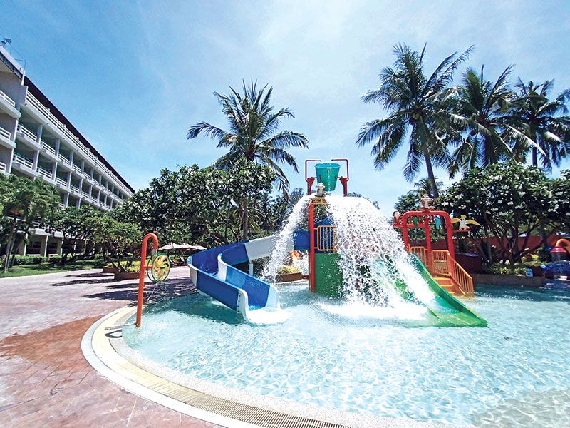 นอกจากนี้ ยังได้เนรมิตสระว่ายน้ำและบริเวณโดยรอบ ให้กลายเป็นสวนแห่งความสุขท่ามกลางต้นไม้นานาพรรณ บรรยากาศร่มรื่น โดยมีหอคอยน้ำตกพร้อมด้วยสไลเดอร์ในสระเด็ก และสนามเด็กเล่นกลางแจ้ง รวมถึงพื้นที่พักผ่อน, มุมกิจกรรมศิลปะสำหรับเด็ก, ร้านไอศกรีม, คลาสทำพิซซ่าที่ร้านอาหารอิตาเลียน เปปปิน่า ออน เดอะ บีช ซึ่งตั้งอยู่ภายในโรงแรม
