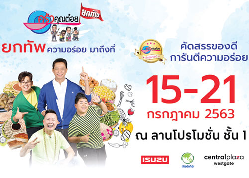 “ครัวคุณต๋อยยกทัพ” ชวนชิมความอร่อยจานเด็ดของสุดยอดร้านอาหารคาว-หวาน จากทุกทิศทั่วไทยกว่า 80 ร้านค้าที่ “ไม่ไปถือว่าผิด” ถึง 21 ก.ค.ที่ ศูนย์การค้าเซ็นทรัลพลาซา เวสต์เกต พร้อมส่งความอร่อยถึงบ้าน ด้วยส่วนลดค่าจัดส่ง 60 บาท โทร.098-2829559