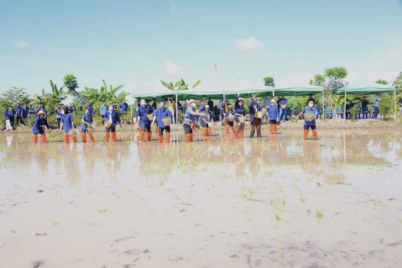 ในโอกาสนี้ รัฐมนตรีช่วยว่าการกระทรวงเกษตรและสหกรณ์ ได้มอบเมล็ดพันธุ์ข้าวพระราชทานจากพระราชพิธีพืชมงคลจรดพระนังคัลแรกนาขวัญ ประจำปี 2563 เพื่อเป็นเมล็ดพันธุ์ในการเพาะปลูกแก่เกษตรกรจาก 8 อำเภอ และมอบหนังสืออนุญาตให้เข้าทำประโยชน์ในเขตปฏิรูปที่ดิน (ส.ป.ก.4-01) รวมทั้งมอบใบรับรอง GAP แก่เกษตรกร จำนวน 7 ราย จากนั้นได้เยี่ยมชมแปลงเกษตรผสมผสาน และปล่อยพันธุ์ปลา โยนกล้า และขับรถดำนาปักดำกล้าข้าว บริเวณพื้นที่แปลงทฤษฎีใหม่โคกหนองนาตากะยาย ซึ่งมีพื้นที่รวมทั้งสิ้นกว่า 8 ไร่ด้วย