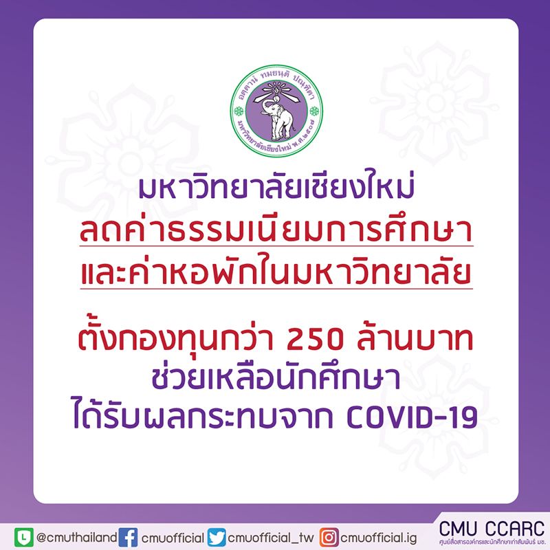 ท่านอธิการบดี : สำหรับปัญหาด้านการเงินของผู้ปกครอง ทางมหาวิทยาลัย ให้ความสำคัญกับเรื่องนี้มาก เพราะเราไม่ต้องการให้นักศึกษาต้องเสียสิทธิ์ทางการศึกษาเนื่องจากปัญหาพ่อแม่ผู้ปกครองประสบปัญหาตกงานเพราะพิษโควิด เบื้องตนมหาวิทยาลัยเชียงใหม่เตรียมเงินสำรองไว้เพื่อการนี้จำนวน 250 ล้านบาทดังนั้นหากนักศึกษามีปัญหาด้านการเงินก็สามารถเข้ามาปรึกษากับมหาวิทยาลัยได้ ซึ่งก็เชื่อว่าจะช่วยบรรเทาปัญหาเฉพาะหน้าไปได้ นอกจากนี้ผู้บริหารของมหาวิทยาลัยเชียงใหม่ยังได้หารือร่วมกันว่าให้ลดค่าธรรมเนียมการศึกษาสำหรับภาคการศึกษาที่ 1 และ 2 ของปีการศึกษา 2563 ลง 4,500 บาท ให้กับนักศึกษาทุกคน คือเราพยายามให้นักศึกษาต้องมีภาระด้านการเงินให้น้อยที่สุด เพื่อให้ผู้ปกครองของนักศึกษาไม่ต้องประสบปัญหาด้านการเงินมากจนเกินไป นอกจากนี้มหาวิทยาลัยยังตกลงลดค่าธรรมเนียมการศึกษาสำหรับคณะใดก็ตามที่มีนักศึกษาต้องชำระเงินเพื่อการศึกษาเกินกว่า45,000 บาท โดยลดให้ร้อยละ 10ขณะเดียวกันเรายังเตรียมจัดหาทุนการศึกษาชนิดต่างๆ ให้กับนักศึกษาที่มีคุณสมบัติตามเกณฑ์ที่กำหนดด้วย โดยมีทั้งทุนการศึกษาแบบให้เปล่า และยังมีทุนการศึกษาแบบอื่นๆ เช่น ทุนสำหรับจ้างนักศึกษาทำงานในระหว่างเรียน ซึ่งมาตรการที่เราเตรียมไว้นี้คงช่วยบรรเทาปัญหาให้กับผู้ปกครองที่มีบุตรหลานเรียนกับเราได้พอสมควร ล่าสุดมหาวิทยาลัยเชียงใหม่มีนักศึกษาทั้งหมดประมาณ 36,000 คน เราเชื่อว่าน่าจะช่วยแก้ปัญหาให้นักศึกษาของเราได้ประมาณ 40-50 เปอร์เซ็นต์ ดังนั้นขอให้ผู้ปกครองที่มีบุตรหลานมาเรียนกับเราโปรดสบายใจได้ และก็ขอให้นักศึกษาเบาใจได้ แต่ขอเพียงอย่างเดียวคือขอให้ตั้งใจเรียนให้ดีที่สุดเท่านั้น ส่วนปัญหาอื่นๆ นั้นทางผู้บริหารของมหาวิทยาลัยจะพยายามแก้ให้ได้มากที่สุด ขอย้ำอีกทีหนึ่งว่า สำหรับผู้ปกครองของนักศึกษารายใดที่ยังลังเลใจ ไม่แน่ใจว่าจะให้บุตรหลานเข้ามาศึกษาต่อในมหาวิทยาลัยของรัฐทุกแห่งที่บุตรหลานสอบเข้าเรียนต่อได้แล้ว เพราะเกรงว่าไม่มีเงินจ่ายค่าบำรุงการศึกษา ก็ขอย้ำว่าโปรดอย่าตัดอนาคตการศึกษาของบุตรหลาน หากท่านมีปัญหาใดๆ ขอให้เข้าไปปรึกษากับหน่วยงานที่มหาวิทยาลัยจัดตั้งไว้ เพราะมหาวิทยาลัยทุกแห่งตระหนักดีว่าในยามนี้ต้องช่วยให้ผู้สอบเข้าศึกษาต่อได้แล้ว สามารถเรียนต่อไปให้ได้ ยิ่งในยุคที่มีปัญหาผู้คนตกงานเพราะพิษโควิด-19 มหาวิทยาลัยยิ่งต้องให้ความช่วยเหลือมากขึ้นขอแนะนำให้ผู้มีปัญหาด้านการเงินสำหรับส่งเสียให้บุตรหลานเรียนในม