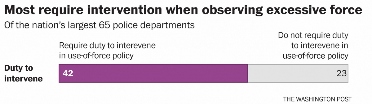 In all, 42 of the 65 departments have a “duty to intervene” provision in their use-of-force policies.
