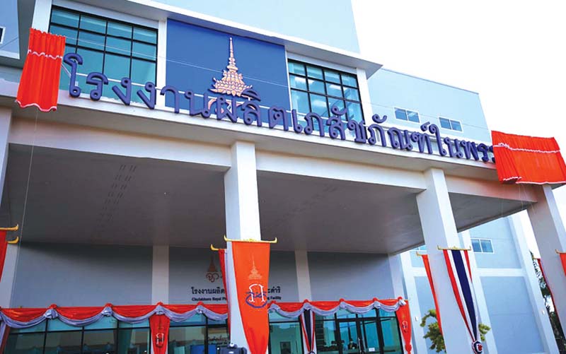 ศาสตราจารย์ ดร.สมเด็จพระเจ้าน้องนางเธอ เจ้าฟ้าจุฬาภรณวลัยลักษณ์ อัครราชกุมารี กรมพระศรีสวางควัฒน วรขัตติยราชนารี เสด็จไปทรงเปิดอาคาร “โรงงานผลิตเภสัชภัณฑ์ในพระดำริ” ณ ตำบลพลูตาหลวง อำเภอสัตหีบ จังหวัดชลบุรี ด้วยพระปณิธานอันแน่วแน่ที่จะพัฒนางานด้านวิทยาศาสตร์การแพทย์และการสาธารณสุขของประเทศไทยเพื่อยกระดับคุณภาพชีวิตของประชาชน ทรงมีพระดำริให้ราชวิทยาลัยจุฬาภรณ์ดำเนินโครงการจัดสร้างอาคารเพื่อเป็นโรงงานต้นแบบผลิตเภสัชภัณฑ์ที่จะเข้ามาเพิ่มขีดความสามารถในการต่อยอดนำงานวิจัยเข้าสู่กระบวนการผลิตที่สามารถนำมาใช้ได้ในมนุษย์ พัฒนาเภสัชภัณฑ์สําหรับใช้ในการรักษาผู้ป่วยมะเร็งให้ต่อเนื่องสมบูรณ์ตั้งแต่ต้นน้ำถึงปลายน้ำ เชื่อมโยงความรู้และประสานความร่วมมือด้านเทคโนโลยีการผลิตเภสัชภัณฑ์กับนานาชาติ เพื่อให้ประเทศไทยสามารถผลิตเภสัชภัณฑ์ประสิทธิภาพสูงสําหรับรักษาโรคมะเร็งใช้ได้ด้วยตนเอง ด้วยทรงตระหนักถึงความยากลำบากของประชาชนที่ไม่สามารถเข้าถึงเภสัชภัณฑ์ประสิทธิภาพสูงสำหรับรักษาโรคมะเร็ง