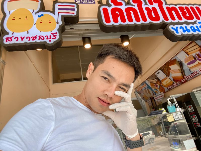ช่วงโควิด-19 ผมได้รับผลกระทบโดยตรง งานประจำที่โรงละครถูกปิดตัวลงชั่วคราว ตอนนั้นมันเคว้งนะครับ ไปต่อไม่เป็น ก็อยู่นิ่งอยู่พักนึง เพราะอยู่ในภาวะ เคอร์ฟิว ทั่วประเทศ ระหว่างนั้นผมก็มองว่า ตัวผมจะทำอะไรได้บ้าง ประจวบเหมาะ ครอบครัวของเพื่อนสนิท ฟิล์ม ปริญ เปิดร้านขนมชื่อ เค้กไข่ ไทยแลนด์ สาขาอ่างทองกับอยุธยา ซึ่งขายดีมาก และผมเองมองว่าเป็นธุรกิจที่น่าสนใจ ก็ปรึกษากับฟิล์มว่า ผมอยากเปิดร้าน ให้มาเป็นหุ้นส่วน เพราะเหมือนเป็นธุรกิจที่เรายังไม่เคยทำ และไม่เคยมีประสบการณ์ เพื่อนก็ยินดี ซึ่งเค้กไข่ไทยแลนด์ เป็นเฟรนไชส์ มีหลายสาขา ตัวของผม คือสาขาชุลบุรีครับ