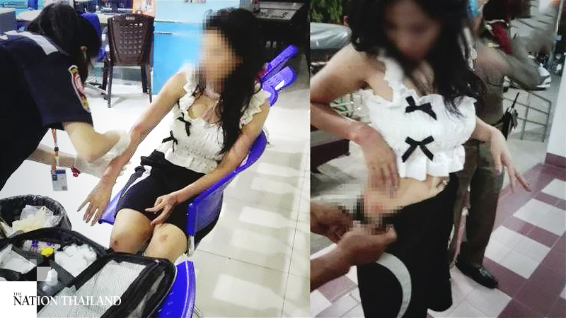 The woman managed to jump out of the van near Wat Chong Lom in Bangkok’s Yannawa district and was spotted asking people for help. Her clothes were torn, and her lower body was uncovered.
