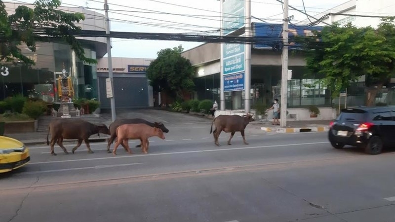 Six buffalos were saved from the knife after they were spotted walking down Bangkok’s Soi Onnut on Wednesday (July 22) and their photos went viral on the net after they were published on the JS100 website.