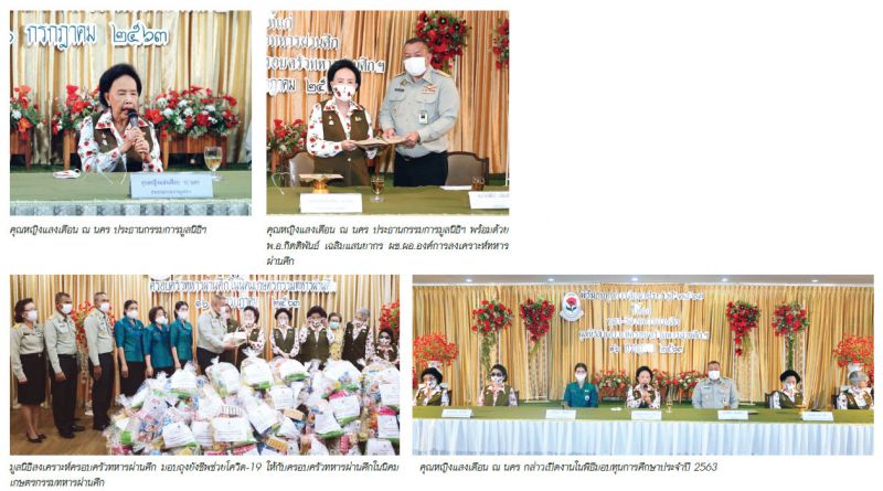 มูลนิธิสงเคราะห์ครอบครัวทหารผ่านศึก ในพระราชูปถัมภ์ สมเด็จพระศรีนครินทราบรมราชชนนี นำโดย คุณหญิงแสงเดือน ณ นคร ประธานกรรมการมูลนิธิฯ พร้อมด้วยคณะกรรมการมอบทุนการศึกษาให้แก่ มูลนิธิสายใจไทย และมอบทุนการศึกษาประจำปีให้แก่ บุตร-ธิดาทหารผ่านศึก ที่เรียนดีแต่ขาดแคลนทุนทรัพย์ และมอบทุนนักเรียนเตรียมทหาร นักเรียนโรงเรียนจันทร์หุ่นบำเพ็ญ จำนวน 292 ทุน เป็นเงินจำนวน 2,939,000 บาท(สองล้านเก้าแสนสามหมื่นเก้าพันบาทถ้วน) และในวันเดียวกันนี้ มูลนิธิสงเคราะห์ครอบครัวทหารผ่านศึกฯยังได้มอบถุงยังชีพ พร้อมเงินปลอบขวัญแก่ครอบครัวทหารผ่านศึก ที่อาศัยอยู่ในกองนิคมเกษตรกรรมทหารผ่านศึก องค์การสงเคราะห์ทหารผ่านศึก เป็นเงิน 946,200 บาท (เก้าแสนสี่หมื่นหกพันสองร้อยบาทถ้วน) มูลค่ารวมที่มูลนิธิฯ มอบให้ในวันนี้เป็นเงินทั้งสิ้น 3,885,200 บาท (สามล้านแปดแสนแปดหมื่นห้าพันสองร้อยบาทถ้วน)