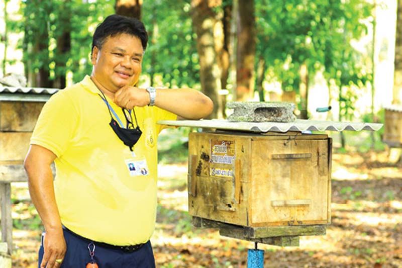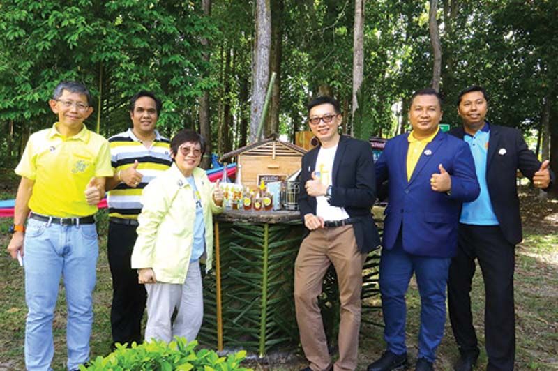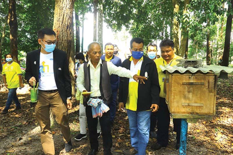 ศ.ดร.ศุภชัย ปทุมนากุล รองปลัดกระทรวงการอุดมศึกษา วิทยาศาสตร์ วิจัยและนวัตกรรม พร้อม นางสาวนิสากร จึงเจริญธรรม อธิบดีกรมวิทยาศาสตร์บริการ รศ.ดร.พีระพงศ์ ทีฆสกุล ประธานอนุกรรมการด้านการพลิกโฉมมหาวิทยาลัย (Reinventing University) นายพันธุ์เพิ่มศักดิ์อารุณี ผู้เชี่ยวชาญเฉพาะด้านพัฒนาทรัพยากรบุคคล และคณะทำงาน ร่วมลงพื้นที่ตรวจเยี่ยมการดำเนินงานโครงการ อว.สร้างงาน ในพื้นที่จังหวัดสุราษฎร์ธานี และเข้าเยี่ยมชมผลิตภัณฑ์ผึ้งโพรง ตำบลพะแสง อำเภอบ้านตาขุน จังหวัดสุราษฎร์ธานี ซึ่งเป็นหนึ่งในพื้นที่ที่ผู้ได้รับการจ้างงานจากโครงการ อว.สร้างงานระยะที่ 1 ลงพื้นที่รวบรวมข้อมูลเกี่ยวกับผลิตภัณฑ์ชุมชน เพื่อการพัฒนายกระดับผลิตภัณฑ์ชุมชนต่อไปในความรับผิดชอบของมหาวิทยาลัยราชภัฏสุราษฎร์ธานี