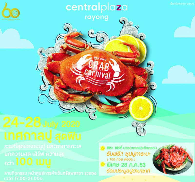 “Rayong Crab Carnival” ชวนชิมปูนิ่ม ปูไข่ดอง ปูม้า แกงคั่วปู ปูนึ่ง น้ำยาปู และ เมนูปูสไตล์ฟิวชั่น ฯลฯ พร้อมก้ามปูใบ้ (ส่งตรงจาก จ.เพชรบุรี) ในเทศกาลปูสุดฟิน ถึง 28 ก.ค. ที่ ศูนย์การค้าเซ็นทรัลพลาซา ระยอง โทร.02-6675555