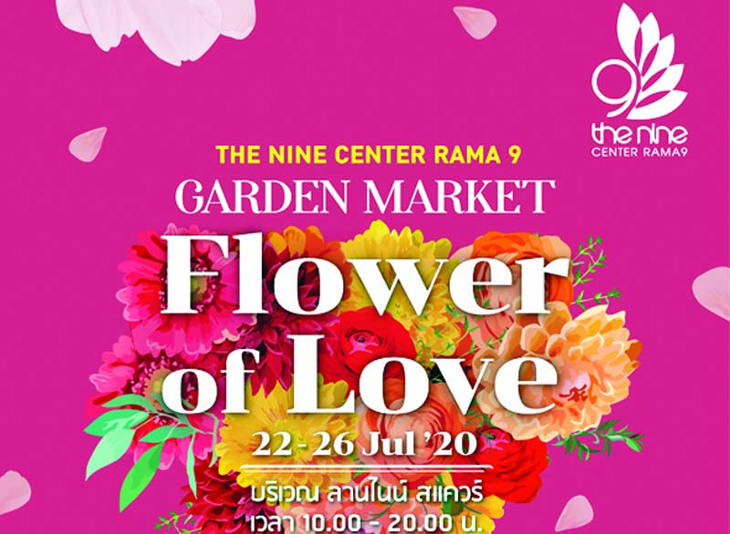 “The Nine Garden Market Flowerof Love” ชวนชมสวนดอกไม้หน้าฝน และจำหน่ายพันธุ์ดอกไม้สวย ต้นไม้ประดับรวมทั้งอุปกรณ์แต่งบ้านและสวนครบครันถึง 26 ก.ค.ที่ ศูนย์การค้า เดอะไนน์ เซ็นเตอร์ พระราม 9 โทร.1285