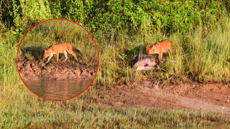 The national park informed that the dholes can hunt victims physically larger than them. A few dholes can take on a deer, and take it apart in two minutes.