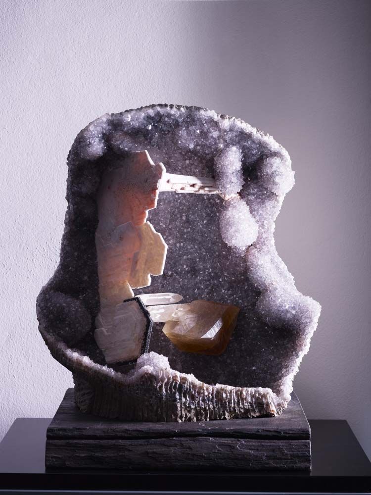 Gogotte หรือผลึกแร่รูปทรงธรรมชาติที่คัดสรรมาจัดแสดงในงานนี้ถือกำเนิดขึ้นในช่วงสุดท้ายของยุคน้ำแข็งเมื่อราว 30 – 50,000 ปีที่แล้วผลึกเหล่านี้ก่อตัวขึ้นเป็นชั้นๆ ระหว่าง “แผ่นฟอสซิล” ที่ฝังอยู่และดินเหนียวด้านบน รูปทรงที่จัดว่าเป็นประติมากรรมธรรมชาติที่งดงามของหินชนิดนี้ ผ่านกระบวนการแช่แข็ง การผุกร่อนและการละลาย ซึ่งสิ่งเหล่านี้ประกอบกันขึ้นจากแผงผลึกที่มีซิลิกาเกาะกันแน่นและไหลซึมผ่านดินเหนียวชั้นบนจนกลายเป็นชิ้นงานประติมากรรมตามธรรมชาติ หินที่นำมาแสดงบางชิ้นชื่อว่า Gogotte อันน่าอัศจรรย์ยิ่ง มีบันทึกในสมัยพระเจ้าหลุยส์ที่ 14 ว่า พระองค์ทรงนำ Gogotte ขนาดใหญ่ไปตกแต่งสวนในพระราชวังแวร์ซายส์ ในช่วงกลางศตวรรษที่ 20 มีการค้นพบ Gogotte ขนาดเล็กซึ่งคาดว่าเป็นสิ่งที่ประติมากรผู้มีชื่อเสียงในยุคนั้นอย่างบรานคูซี (Brancusi) อาร์พ (Arp) และ มัวร์(Moore) สะสมไว้ นอกจากนี้มีข่าวลือว่านักแสดงฮอลลีวู้ดอย่างนิโคลาส เคจ (Nicholas Cage) ก็เป็นนักสะสมหินชนิดนี้ด้วยเช่นกัน