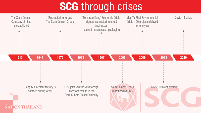 SCG is considered lucky because its main business is not in a sector that has been severely affected, like airlines, hotels or entertainment. The company also has experience coping with previous crises, including the 2011 floods when SCG relocated its headquarters, arranged for employees to work from home, and launched a Business Continuity Management Unit (BCM) to enhance teamwork.