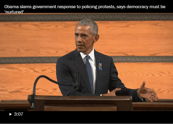 Obama delivers call to action in eulogy for Lewis, likens Trump tactics to those who fought civil rights